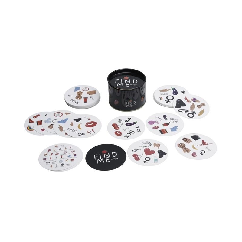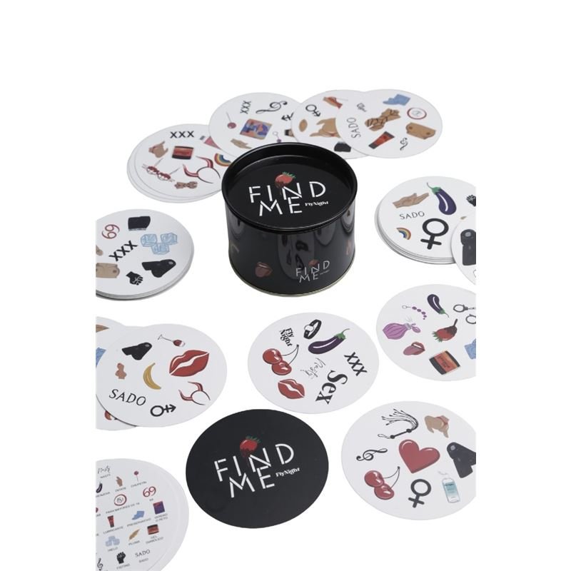 FIND ME consta de 55 cartas, cada una contiene 8 símbolos sexuales.