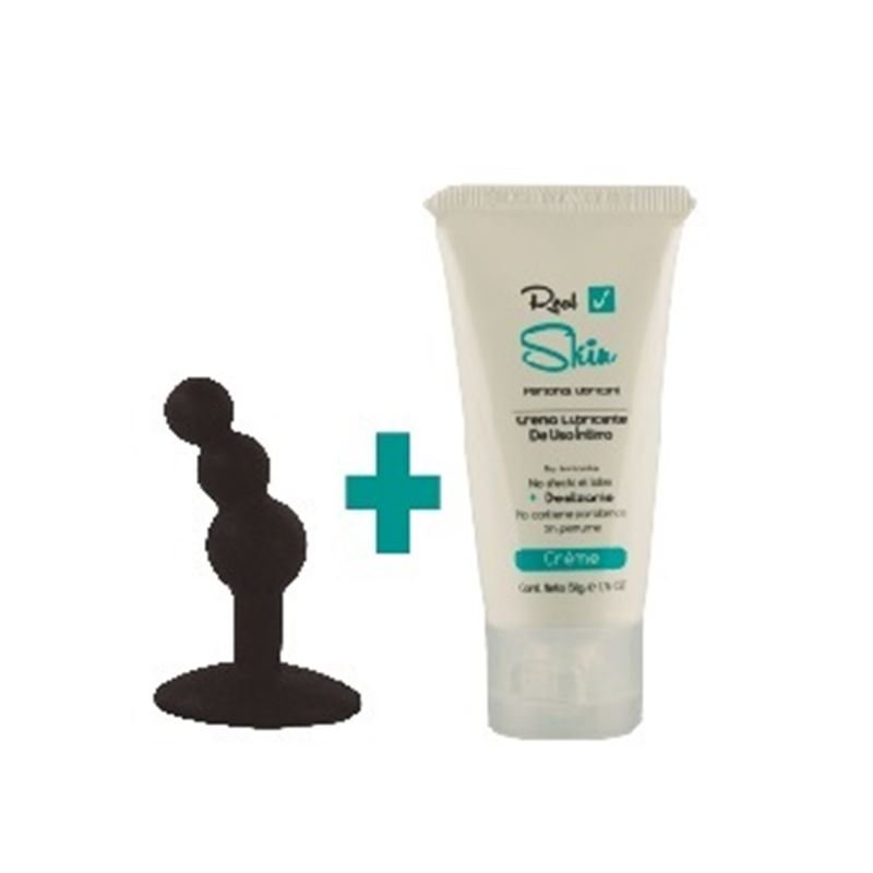 COMBO CREAMA ANAL REAL SKIN + PLUG NANO BUBBLE NEGRO