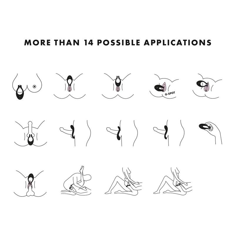 Las funciones del Endless Joy son muy versátiles: Por ejemplo, para la estimulación simultánea del clítoris y de los testículos, coloca el multi-vibrador alrededor del pene por arriba y acomoda la parte inclinada de la cabeza con el lado articulado hacia adelante. Por supuesto, también puedes girar la pieza de joyería de cualquier otra forma que desees, como te guste y de la manera que más te estimule.