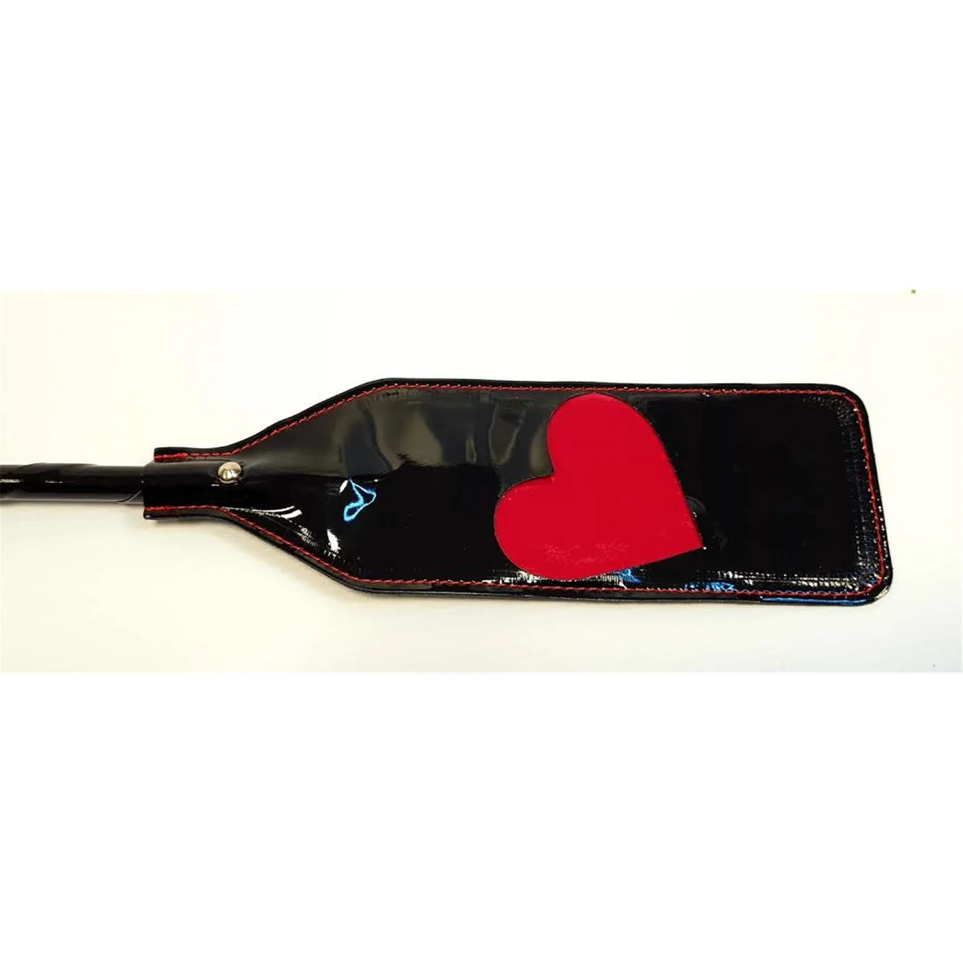 - Trabajada a mano con una rígida fusta de eco cuero en charol. Todo el contorno cosido en hilo rojo.
