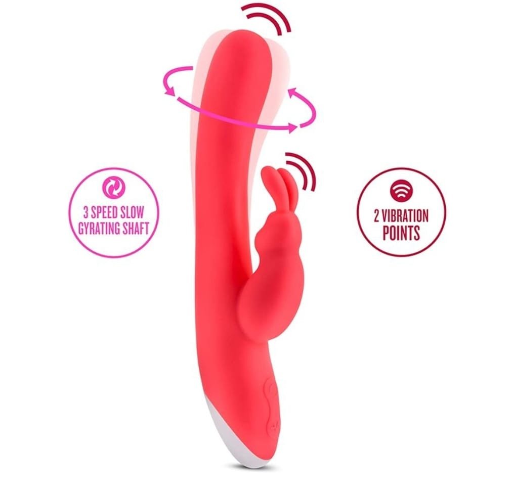 Estimula de tres maneras: el conejito de enfrente estimula el clítoris mientras el eje vibra y gira contra tu punto G para obtener los máximos resultados.