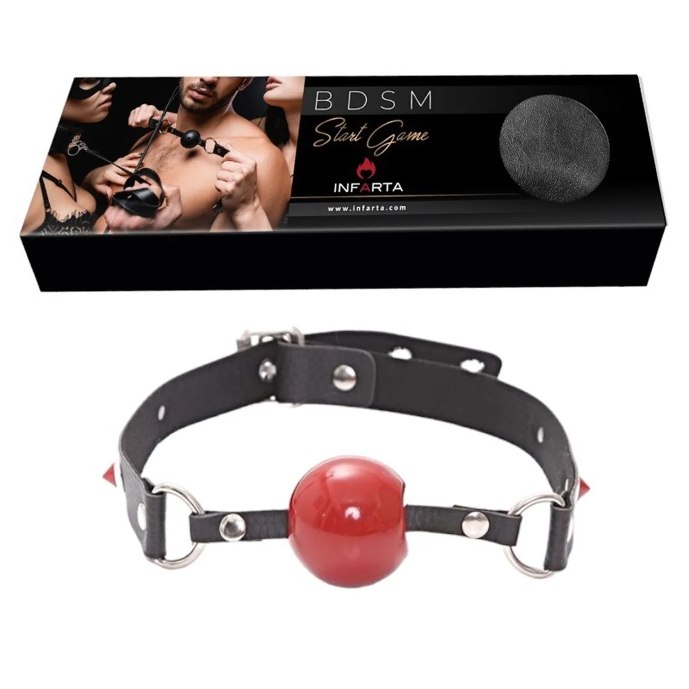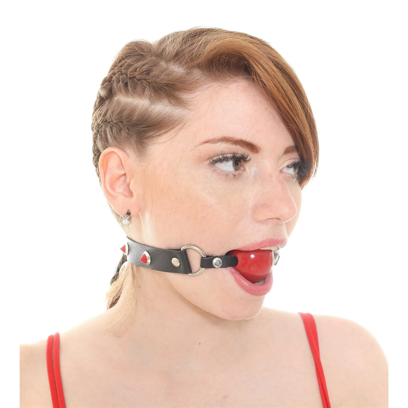 Mordaza Bola Roja Eco Cuero Y Tachas Rojas