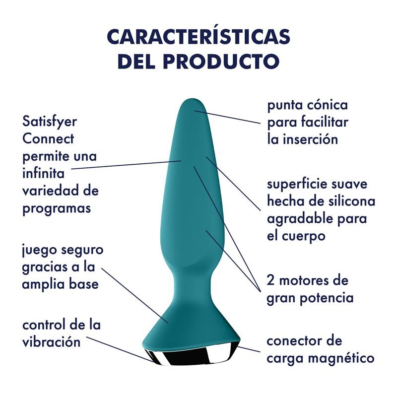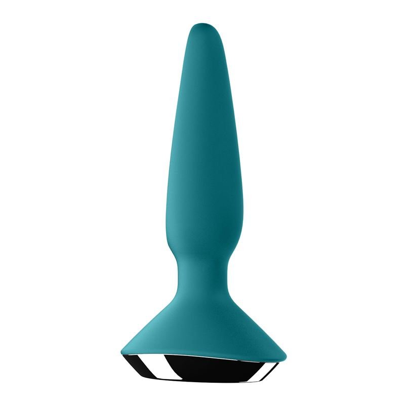 Las intensas vibraciones del tapón son activadas por 2 motores y se pueden controlar mediante una aplicación. Además, Plug-ilicious 1 convence por su suave superficie de silicona, su forma cónica y su base ancha y segura.