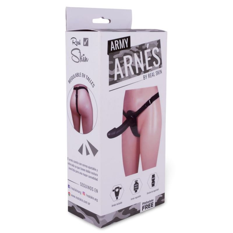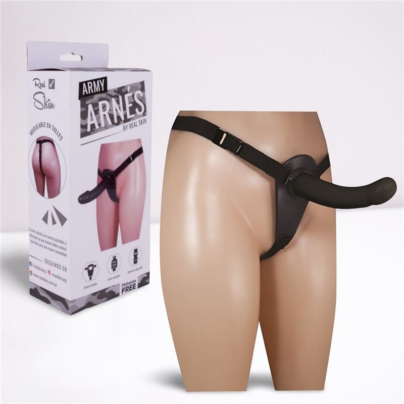 El arnés es regulable a cada cintura y el dildo es intercambiable.