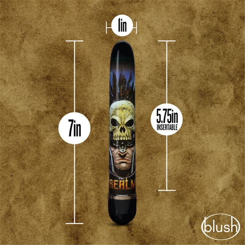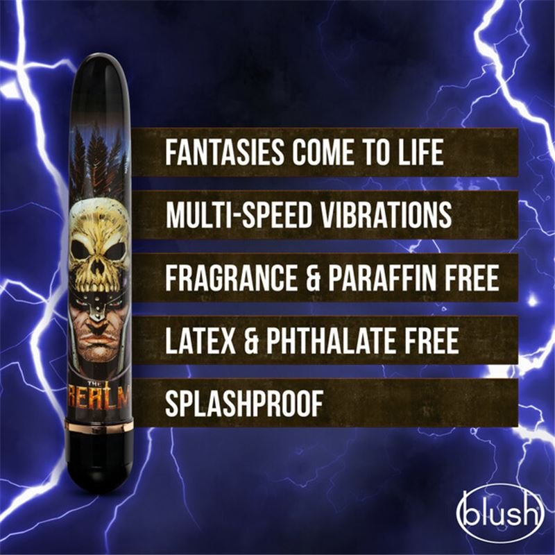 No es solo un mito ... ¡con The Realm tus fantasías épicas cobran vida! El Realm Knight siempre está listo para luchar por ti. Con vibraciones ajustables de varias velocidades, su cuerpo ultrasuave está incrustado de forma segura con un diseño inspirado en los juegos de rol. El Realm Knight es perfecto para jugar solo o en pareja, y tanto para uso interno como externo. Hecho de plástico ABS no poroso, The Realm Knight es seguro para el cuerpo, libre de ftalatos y fácil de limpiar. Requiere 2 pilas AA (no incluidas).