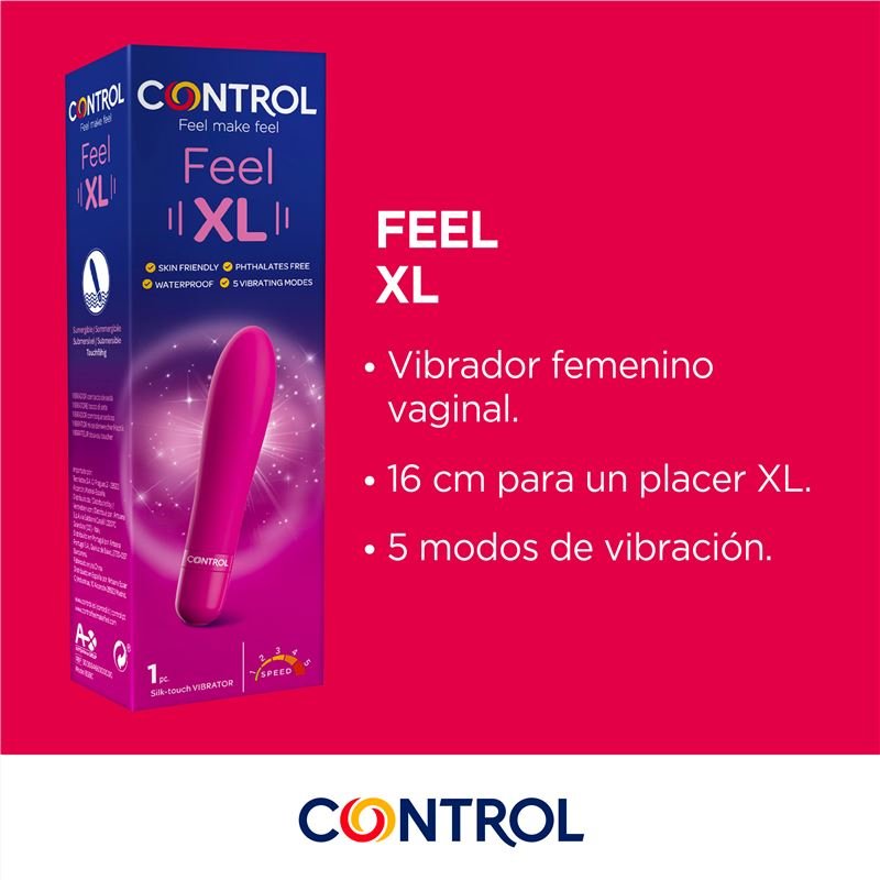 - El vibrador vaginal Control puede regalarte momentos de grandioso placer, llevándote a nuevos e intensos niveles de éxtasis gracias a su formato XL y a los 5 niveles de vibración.