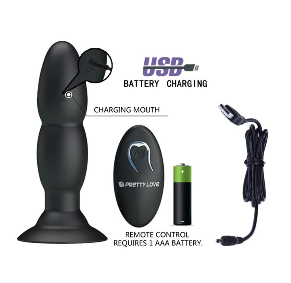 Vibrador Rotador Anal Control Remoto Silicona Recargable 13Cm X 3,5Cm